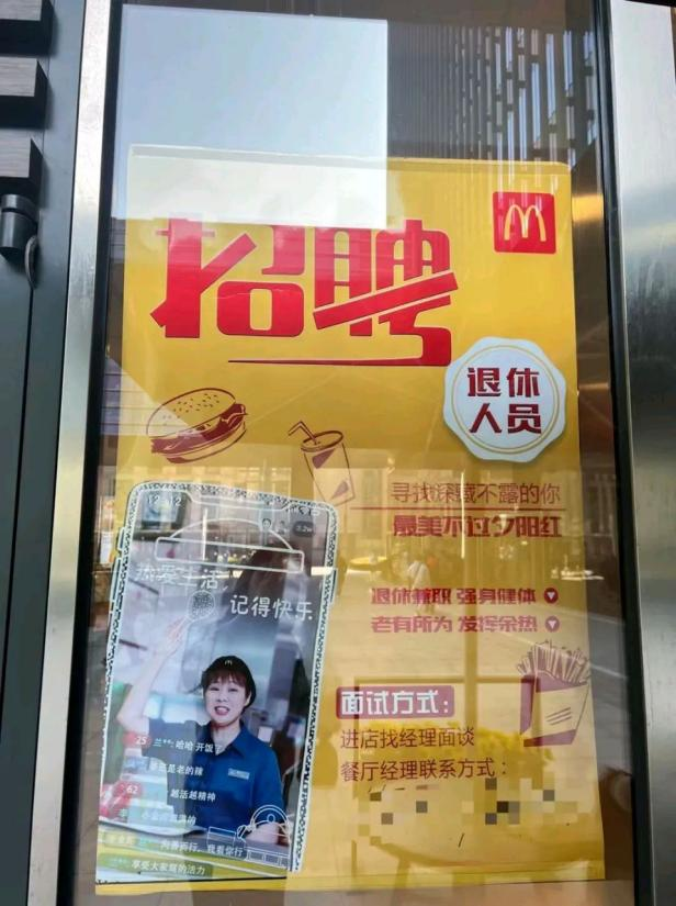 不少麦当劳肯德基等连锁快餐店标明“欢迎退休人员”,但因工作强度、反应速度的限制,退休人员很难坚持,图片源于网络
