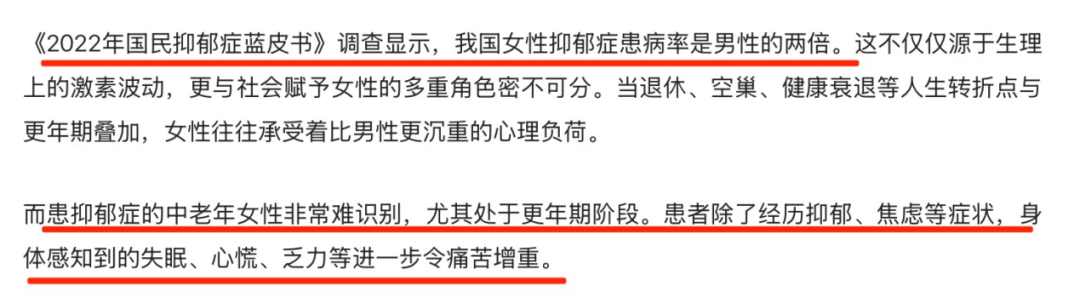 图源:“刀锋时间”报道《最可怕的是,我们对这种病习以为常》里提到遇到退休、围绝经期等人生转折点的女性,往往承担着更大的心理压力