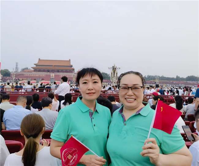 58到家家政阿姨王红丽(左)和范双艳(右)在天安门观礼
